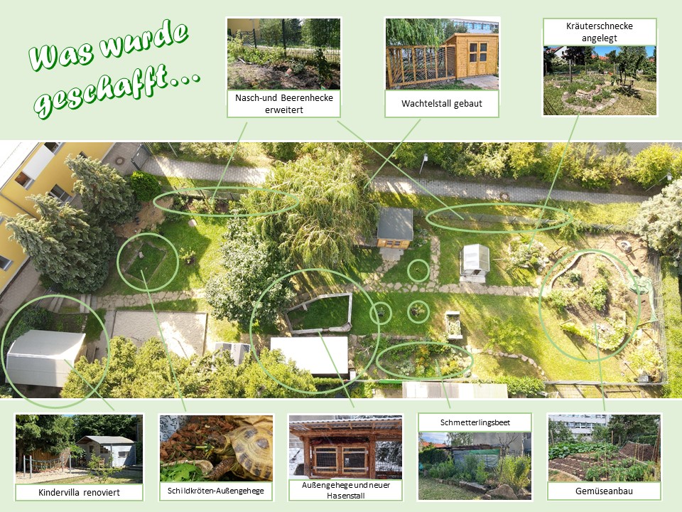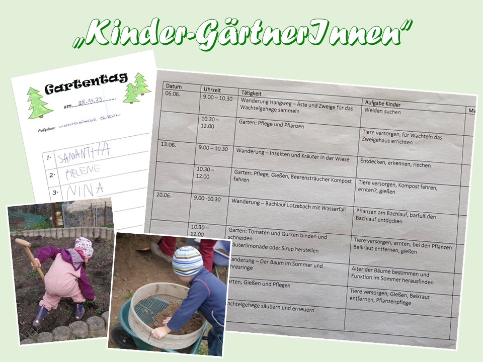 Da kam uns die Teilnahme am „8.Sächsischen Kinder-Garten-Wettbewerb“ gelegen. Dies bedeutete neben viel praktischer Arbeit im Garten auch eine Menge an Dokumentation, Recherche oder Sponsorensuche.