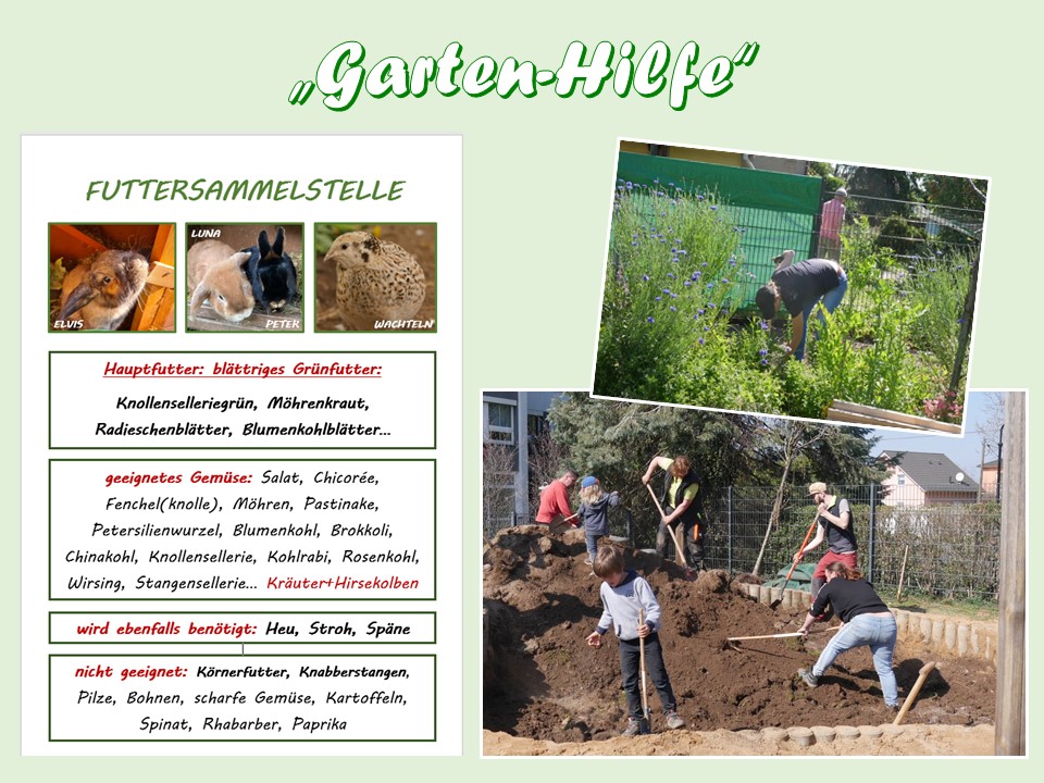 Die Tierversorgung am Wochenende wird schon über einen sehr langen Zeitraum von vier Familien ganz regelmäßig und zuverlässig übernommen. Herzlichen Dank!