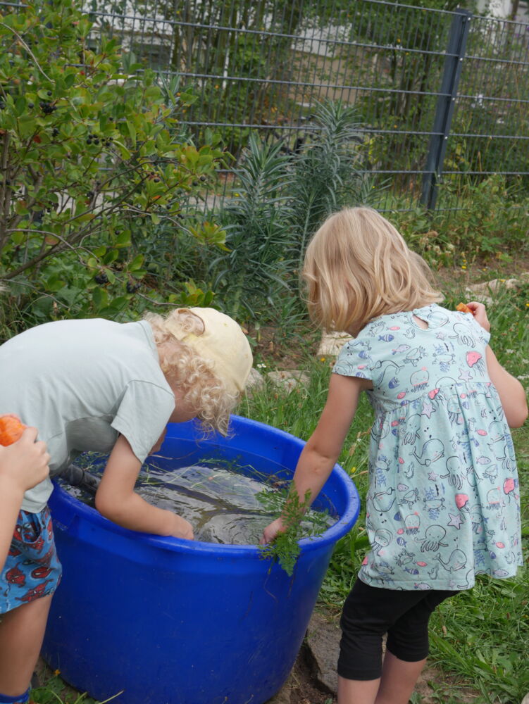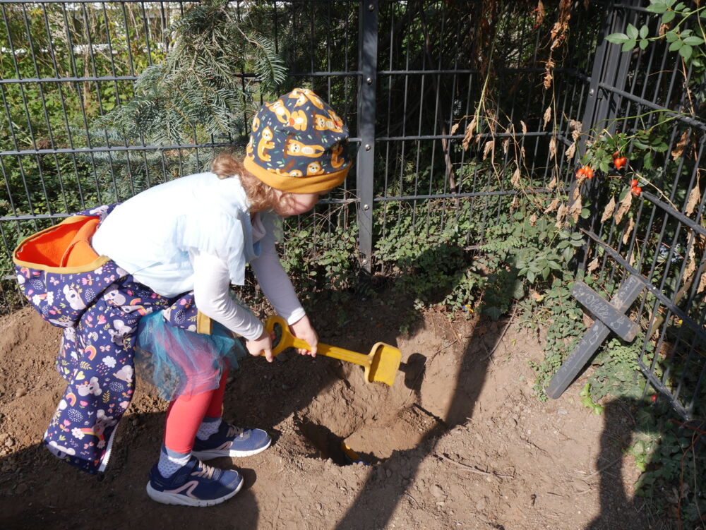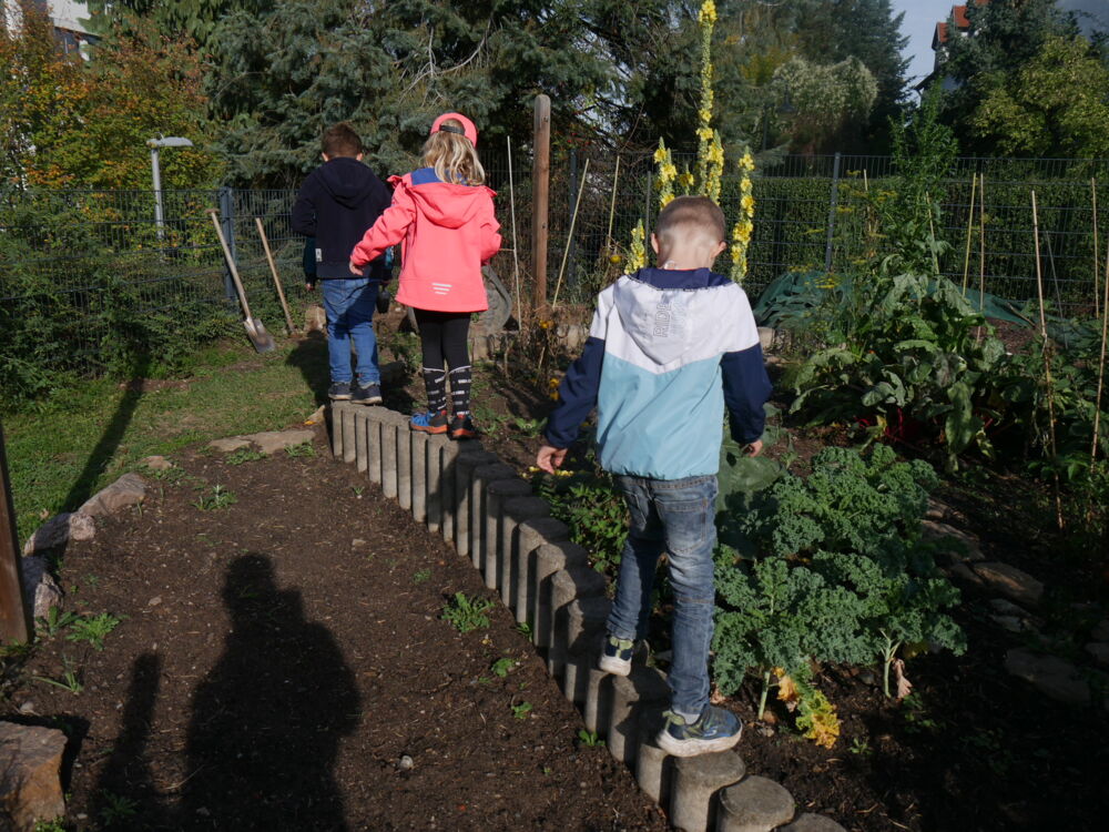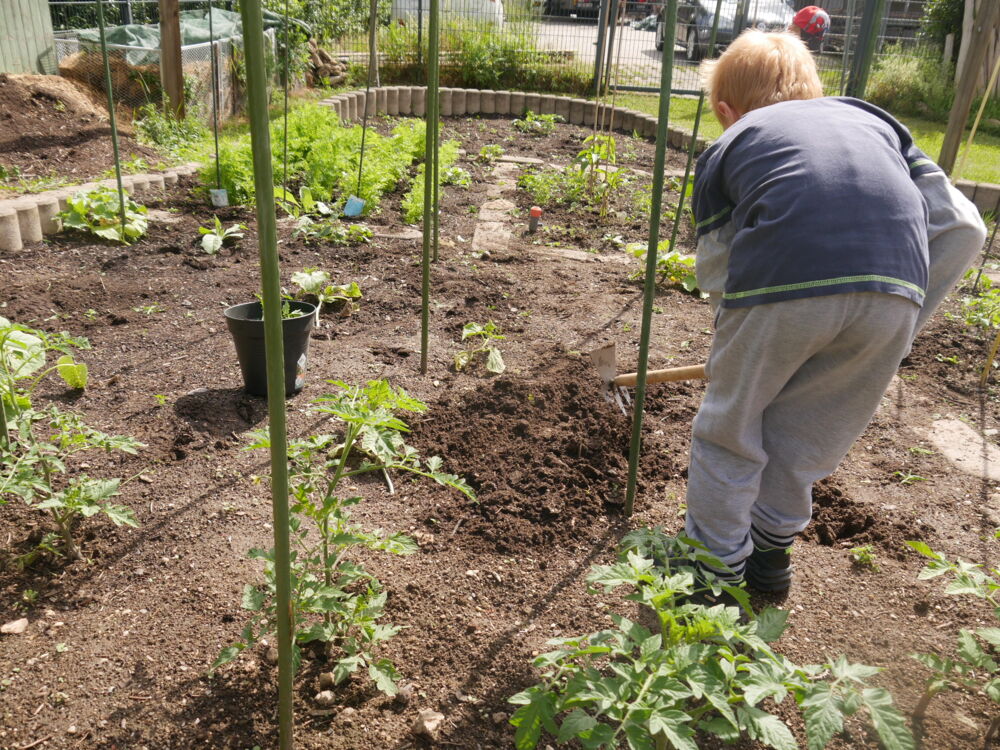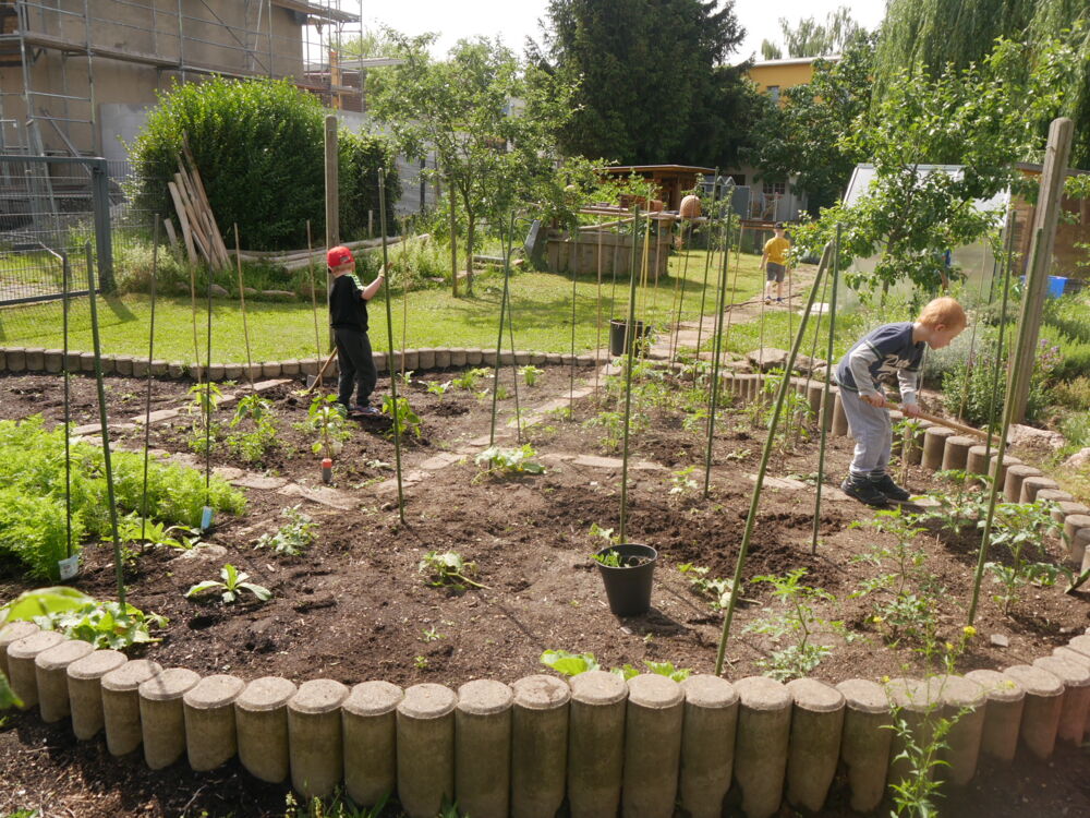 Nach einiger Zeit und jeder Menge Schweiß zentralisierten sich unsere Werte im „Kleinen Garten“. Der Dienstag ist unser Gartentag. Mit 10 Kindern und 2 Fachkräften erforschen, bewahren, pflegen und entdecken wir die Natur. Arbeiten werden nach dem Jahreskreislauf geplant, besprochen und durchgeführt.