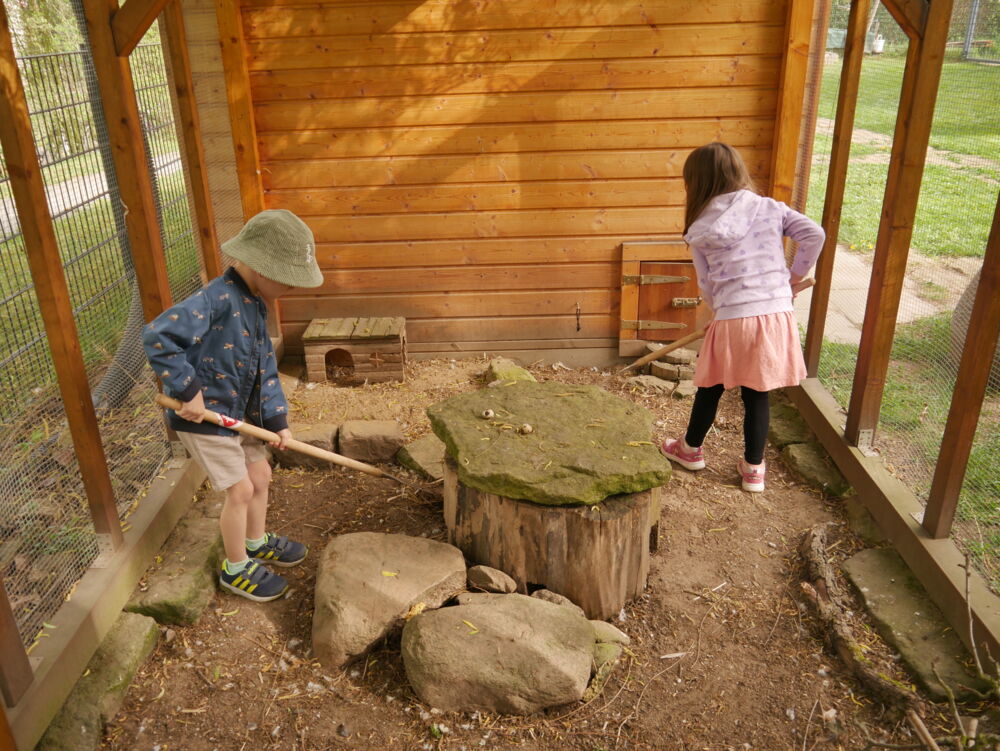 Aufgaben für die Kinder sind das Füttern der Tiere, Säubern der Ställe und das Versorgen mit Liebe und Zuneigung. Herausforderungen für die Kinder sind, z.B. abzuwarten bis man den Stall oder das Gehege besuchen darf, sich den Tieren behutsam zu nähern oder zu warten bis sie von selbst kommen und überhaupt beim Umgang mit den Tieren ruhig zu bleiben. Und am Ende bleibt natürlich die Endlichkeit - die Erfahrung von Verlust und Trauer beim Tod eines Tieres und die gemeinsame Verabschiedung.